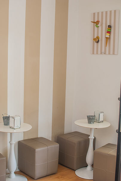 All’esterno del locale, gusterete il gelato nel “piccolo giardino” assemblato con cura, vi aspetto.